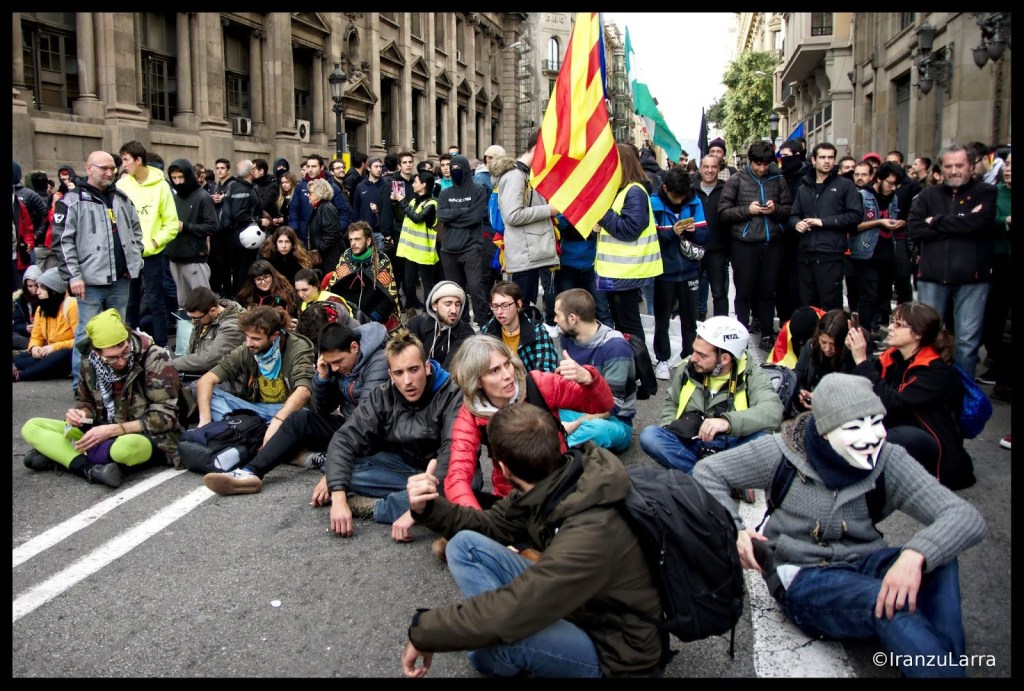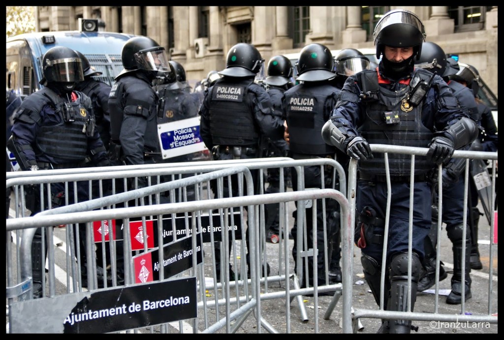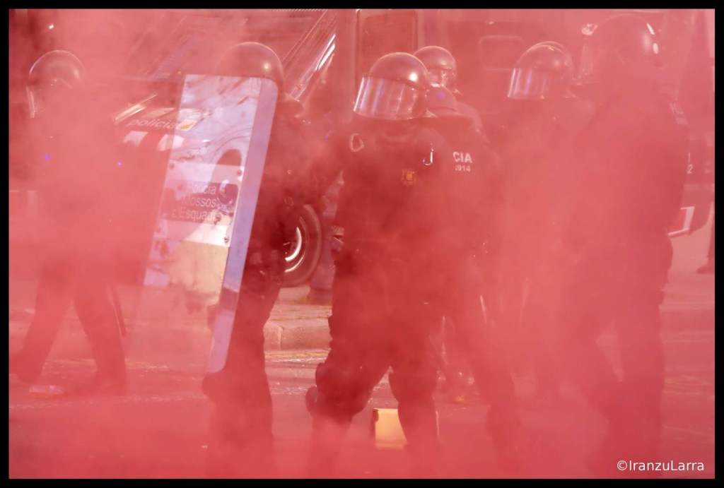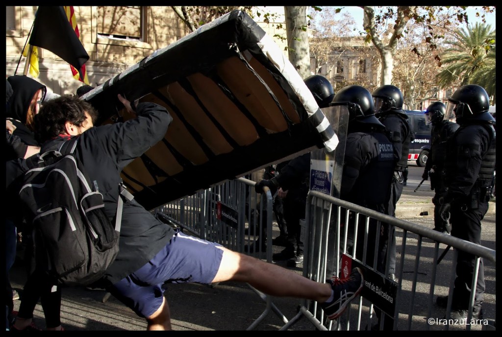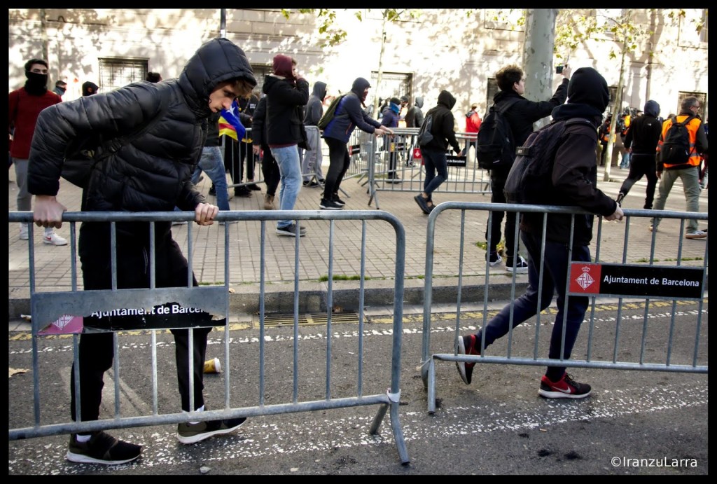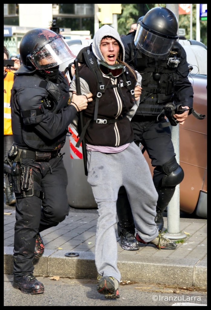 Los Mossos d’ Esquadra cargaron hasta en dos ocasiones contra los jóvenes manifestantes, que arrancaron un semáforo y montaron barricadas para impedir el paso a los efectivos policiales. En este punto se produjeron la mayor parte de las detenciones que se llevaron a cabo el viernes en Barcelona.