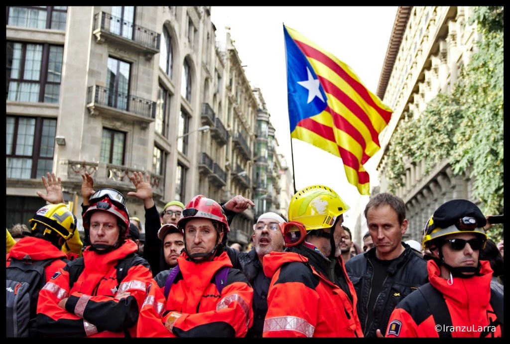 Pasado el mediodía las movilizaciones volvieron a Via Laietana, donde bomberos voluntarios, de la Generalitat y la ciudad de Barcelona, intentaron en todo momento que los manifestantes mantuvieran una actitud pacífica.
