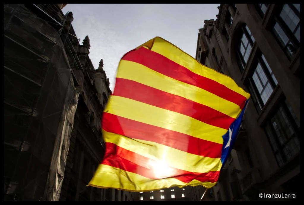 Justo en el momento en el que la tensión comenzaba a ir in crescendo, una mujer, que exhibía una bandera española, se encaraba con los presentes. Mientras algunos manifestantes animaban al resto a no prestarle demasiada atención, otros se arrancaban con un «Bote, bote, bote, ¡español el que no bote» e intentaban tapar la bandera con varias esteladas.
