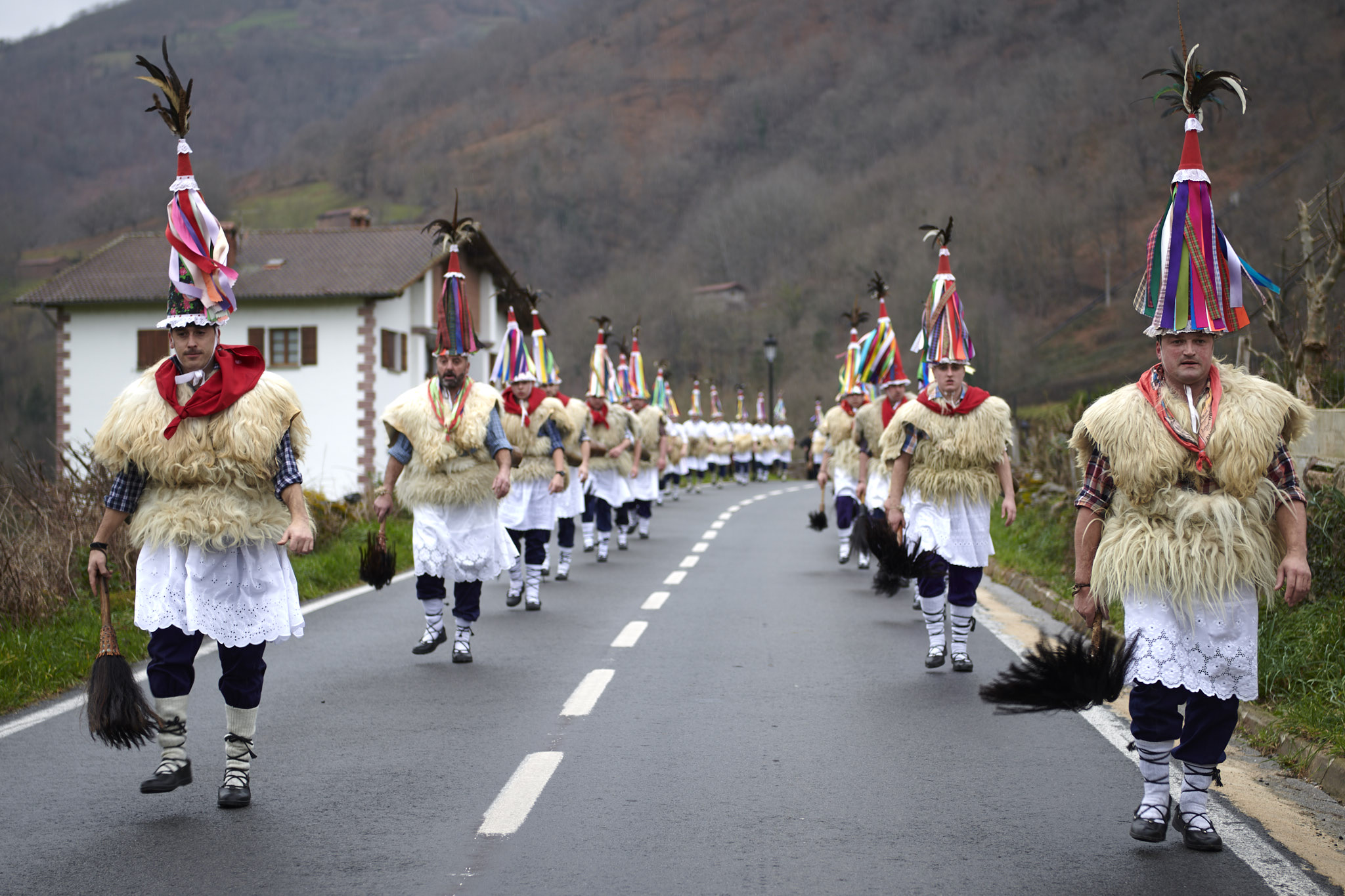 Retrato de un txatxo en los carnavales de Lantz. Un momotxorro se prepara para desfilar por las calles de Alsasua durante los carnavales. Los joaldunaks de Zubieta visitan a los de Ituren en los carnavales de 2023. IRANZU LARRASOAÑALos joaldunaks de Zubieta visitan a los de Ituren en los carnavales de 2023. IRANZU LARRASOAÑA